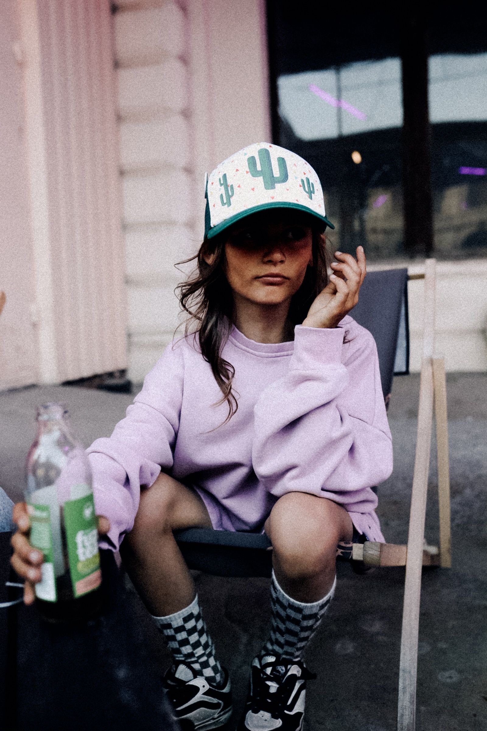 Bluza uszyta ze 100% bawełnianej dresówki zmiękczonej i barwionej w stylu vintage washed lilac