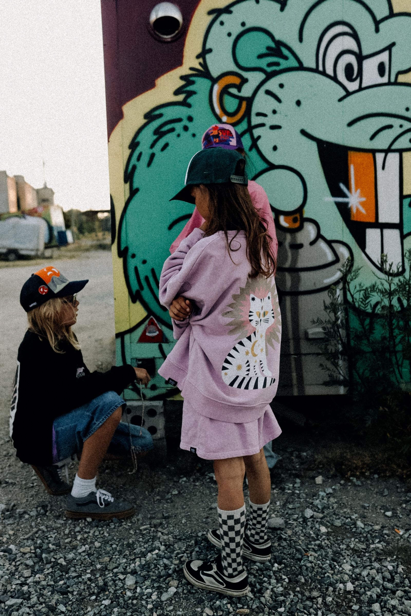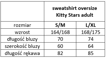 Wygodny krój oversize jest idealny do beztroskiej zabawy i odkrywania dziecięcego świata. Z tyłu na plecach autorska grafika Kitty Stars wykonana bezpiecznymi dla skóry farbami innowacyjną metodą druku cyfrowego DTG