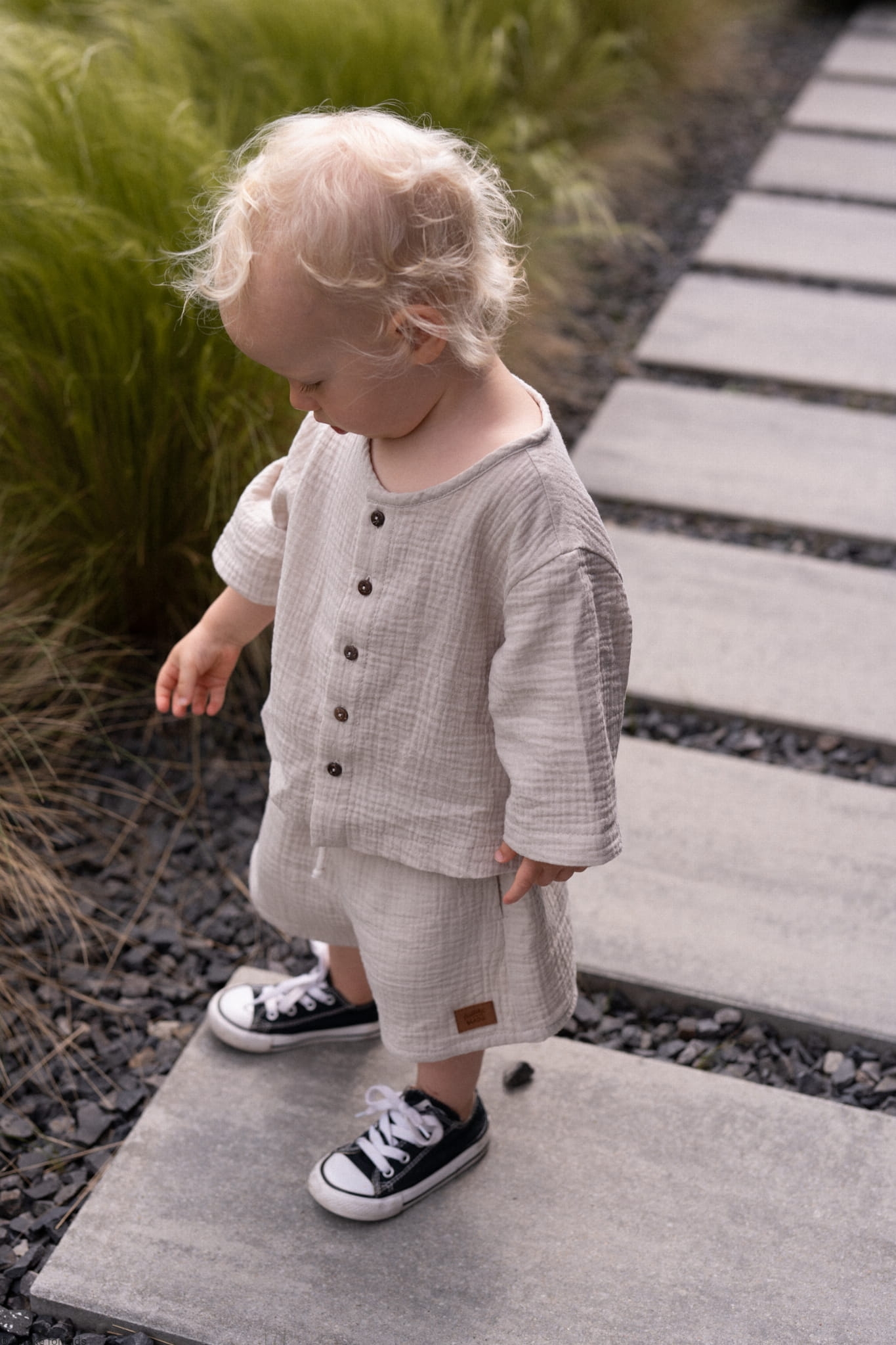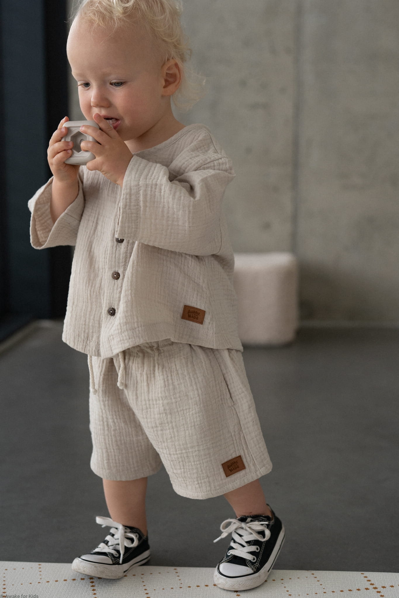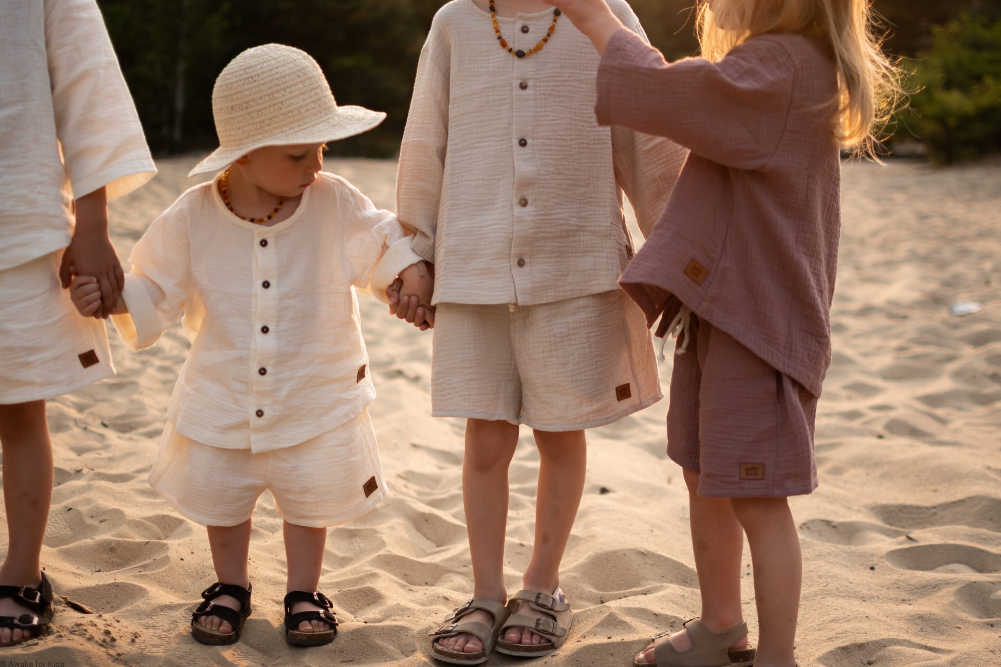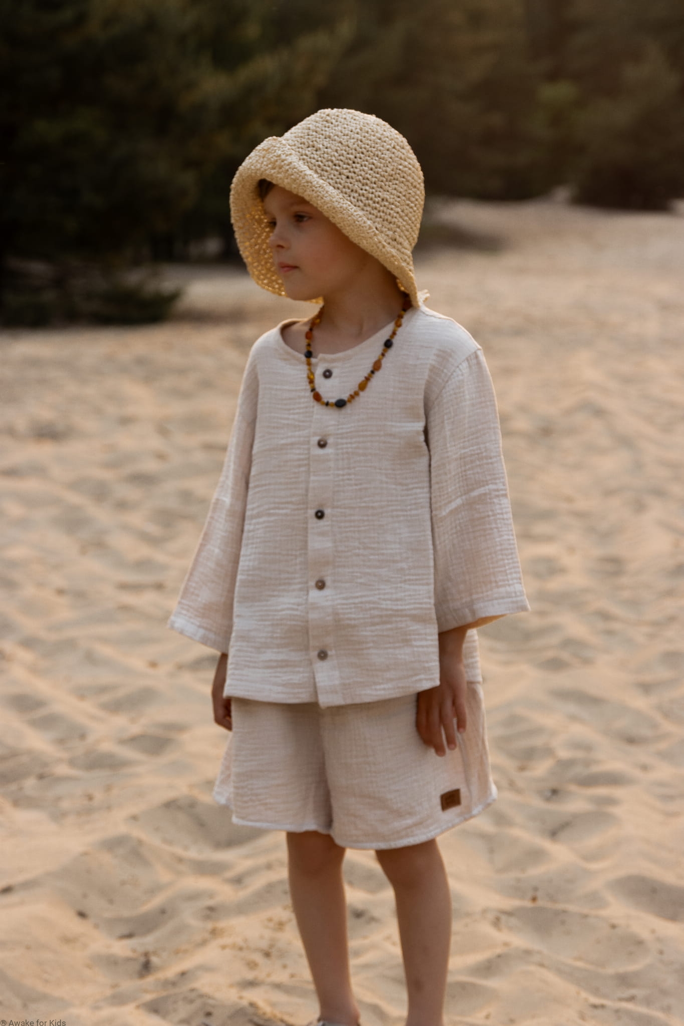 Koszula i spodenki uszyte z muślinu w kolorze jasnego ciepłego beżu